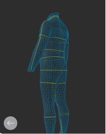 全身タイツみたいなのを着て、アプリの音声に従って計測。1周回る間に12回撮影します。撮影が終わると、すぐに自分の3Dスキャンされた画像が出てきます。