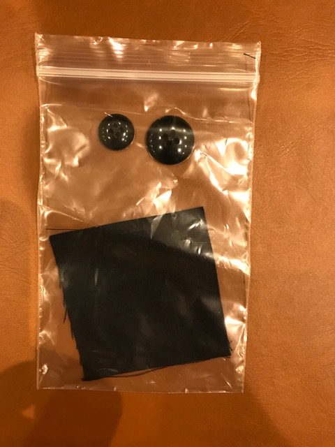 縫製も目立ったアラはありませんでした。内ポケットにはスペアのボタンと、5cm角の生地が入っていました。
