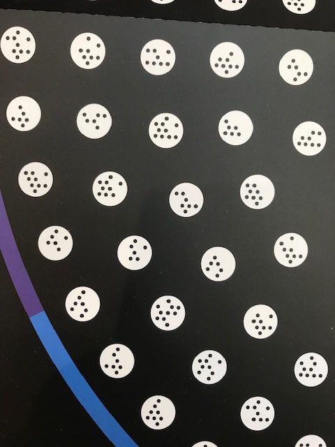 周囲にある小さな円は、よく見るとひとつひとつ点字のような記号が入っています。