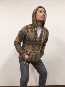 それを活かして作られたのが↓このカンガルーポケットです。(手を入れているポケットの事です)