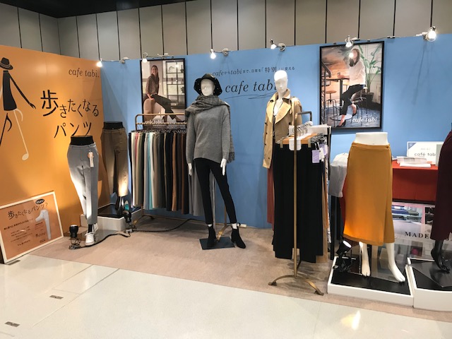 アパレルアイの中山悟です。弊社は先週行われた繊研新聞社主催の上質なファッションとライフスタイルを提案する合同展示会PLUG INに『cafe tabi』”歩きたくなるパンツ”出展しておりました。