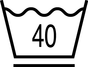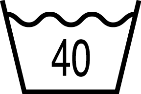 この場合は、40℃までの水温で洗濯機を使って洗うことができます。桶の絵の中に書いてある数字は、水温の上限の温度です。